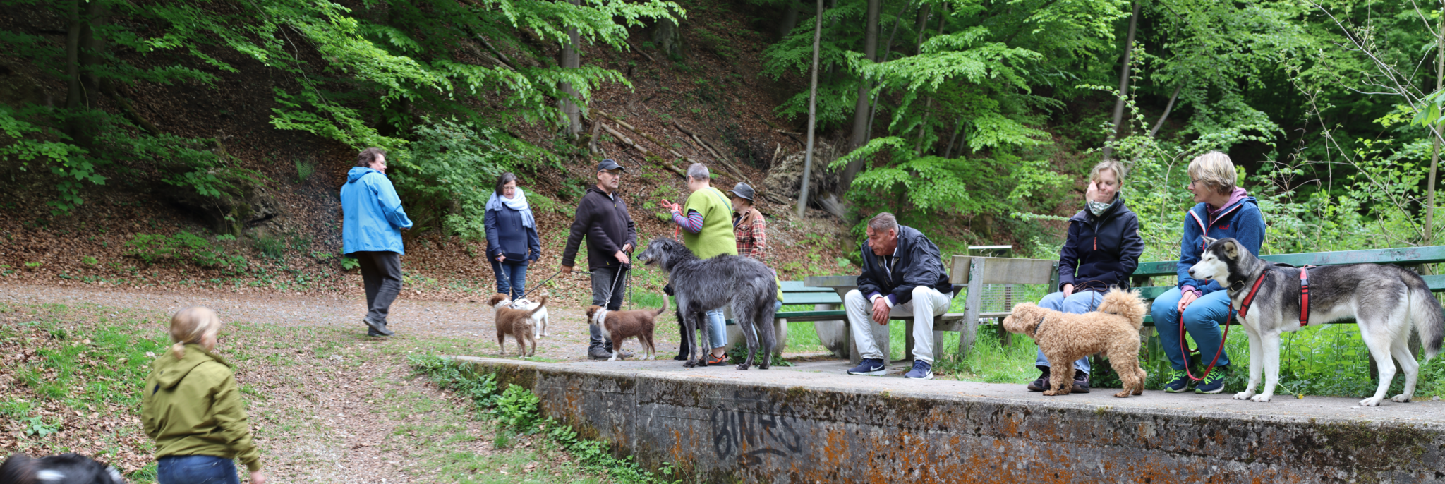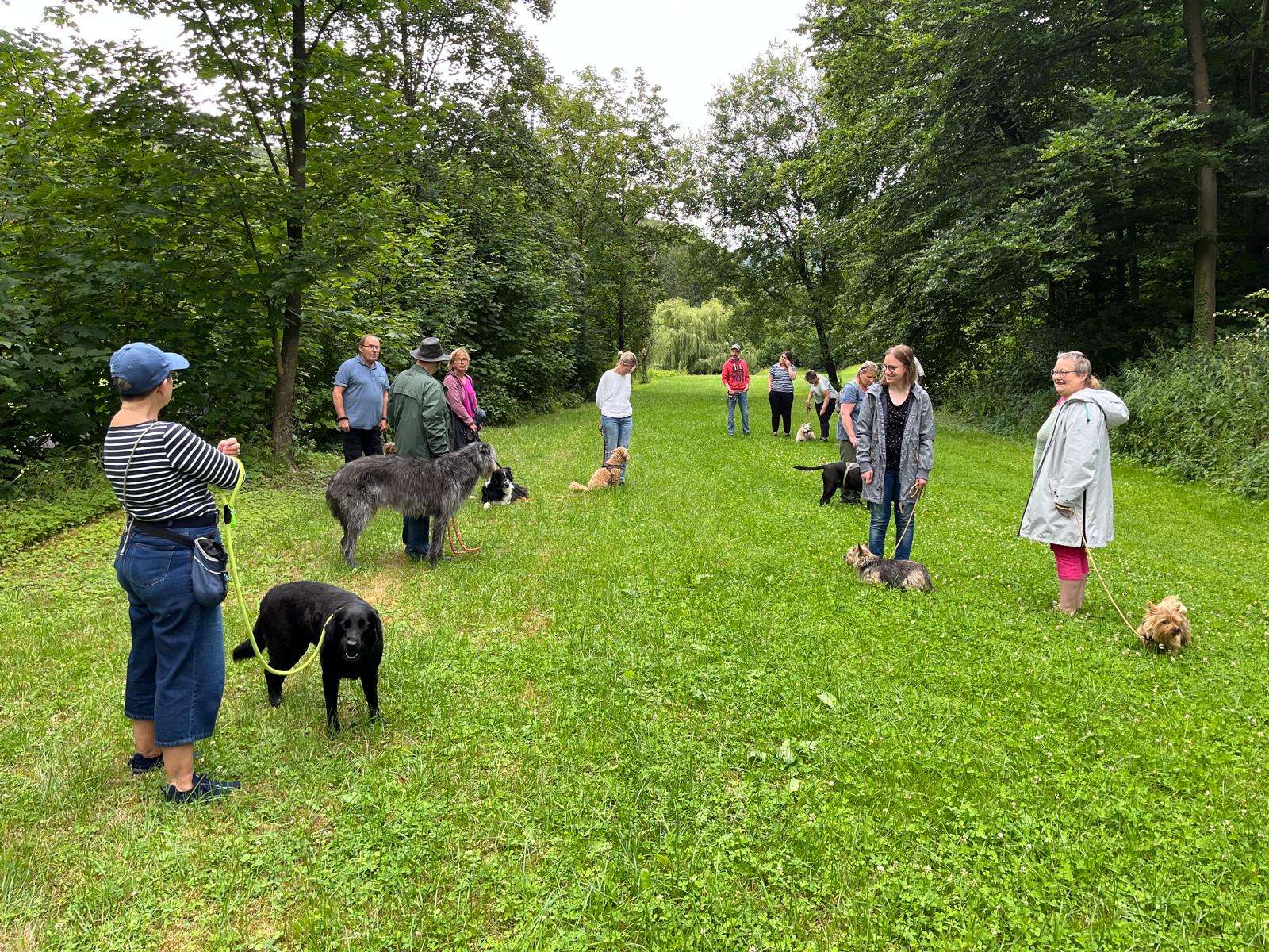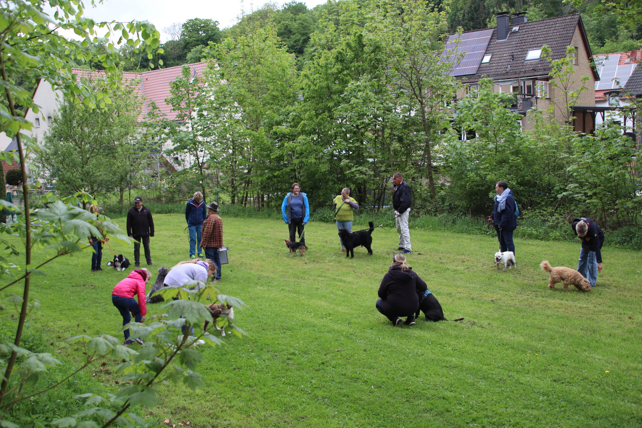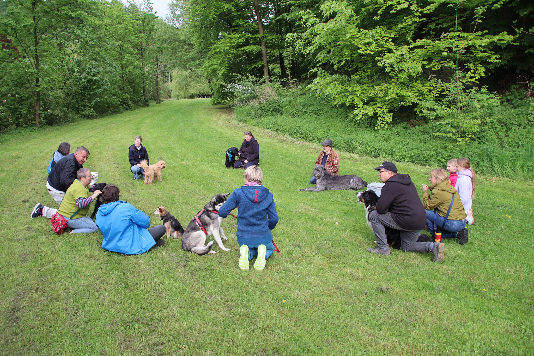 Jede Lernrunde besteht aus einem kurzen Lösen der Hunde, einer Trainingseinheit für die Hunde und eines Minivortrages zur theoretischen Unterstützung der Halters.