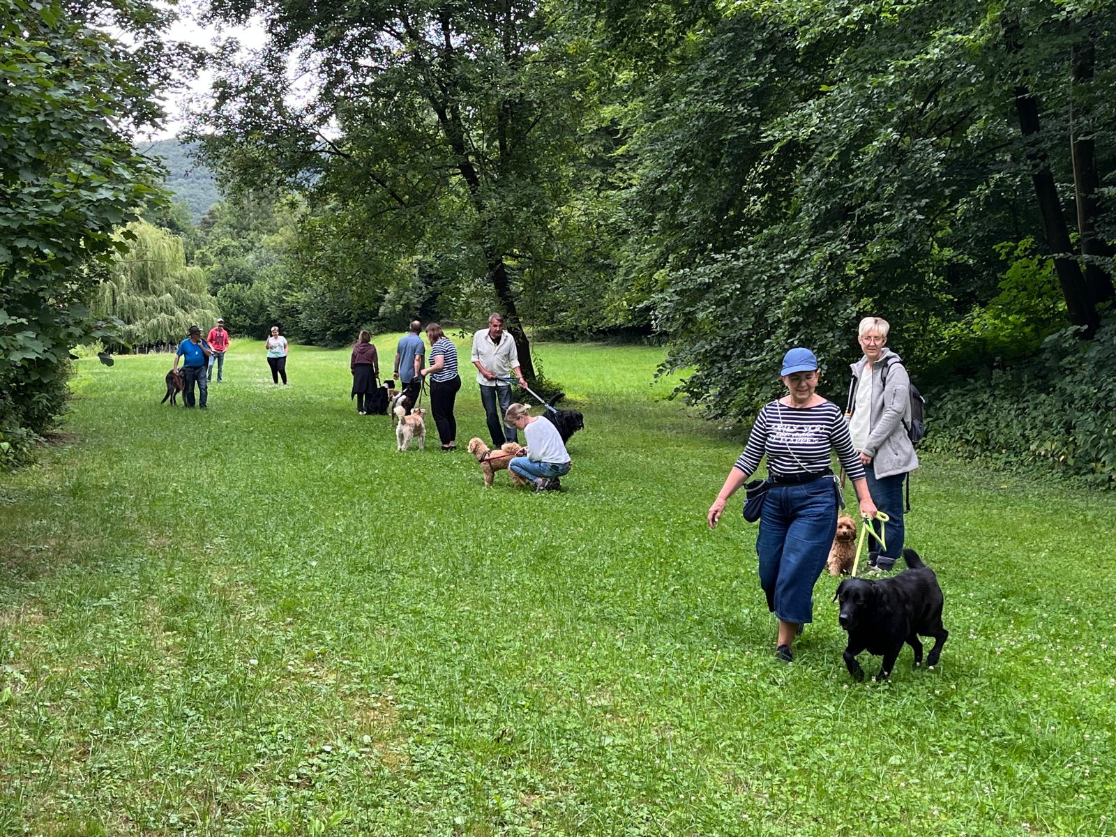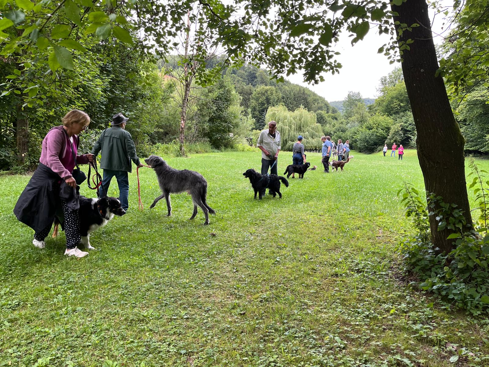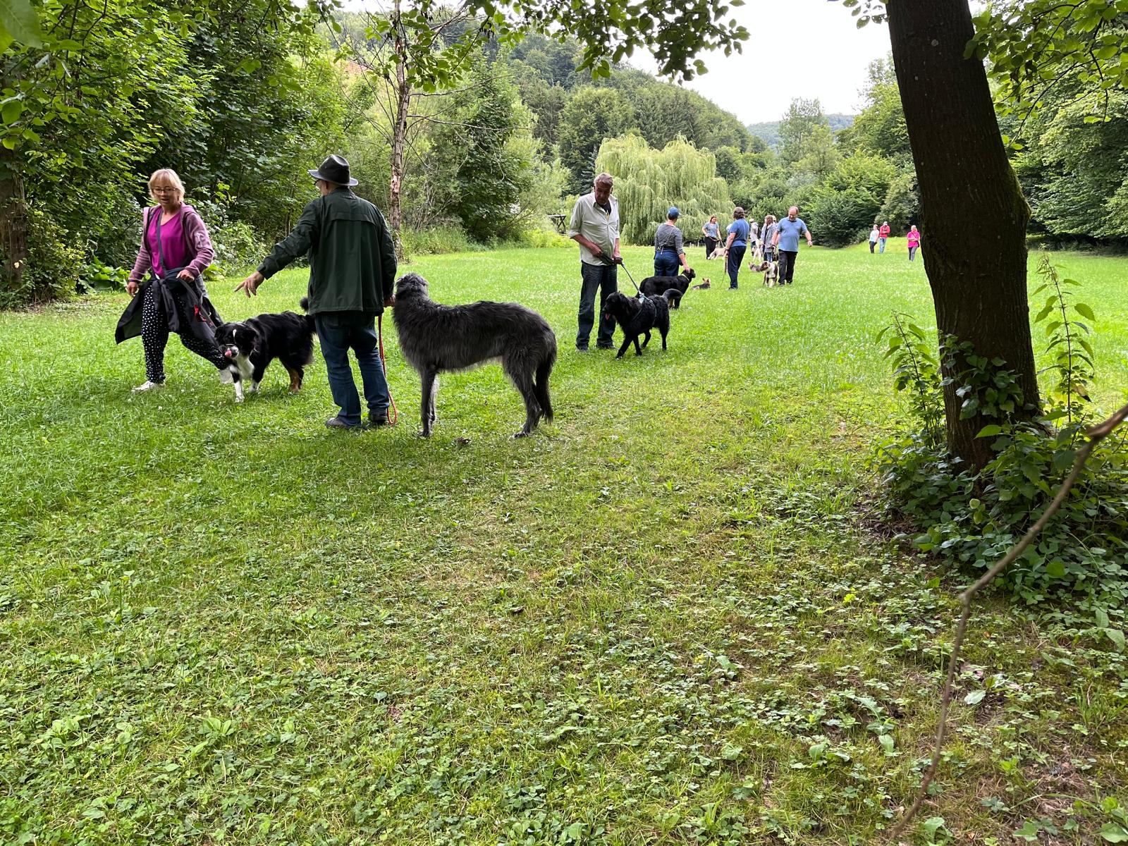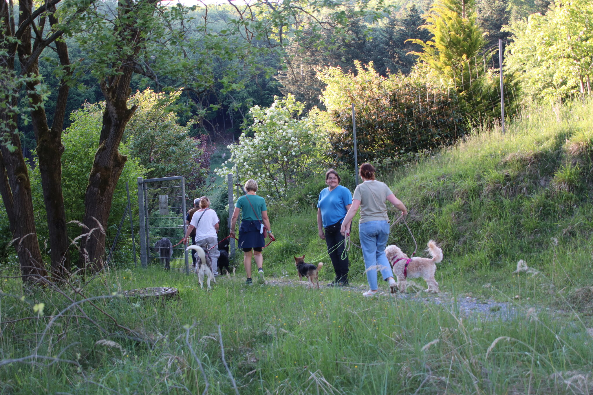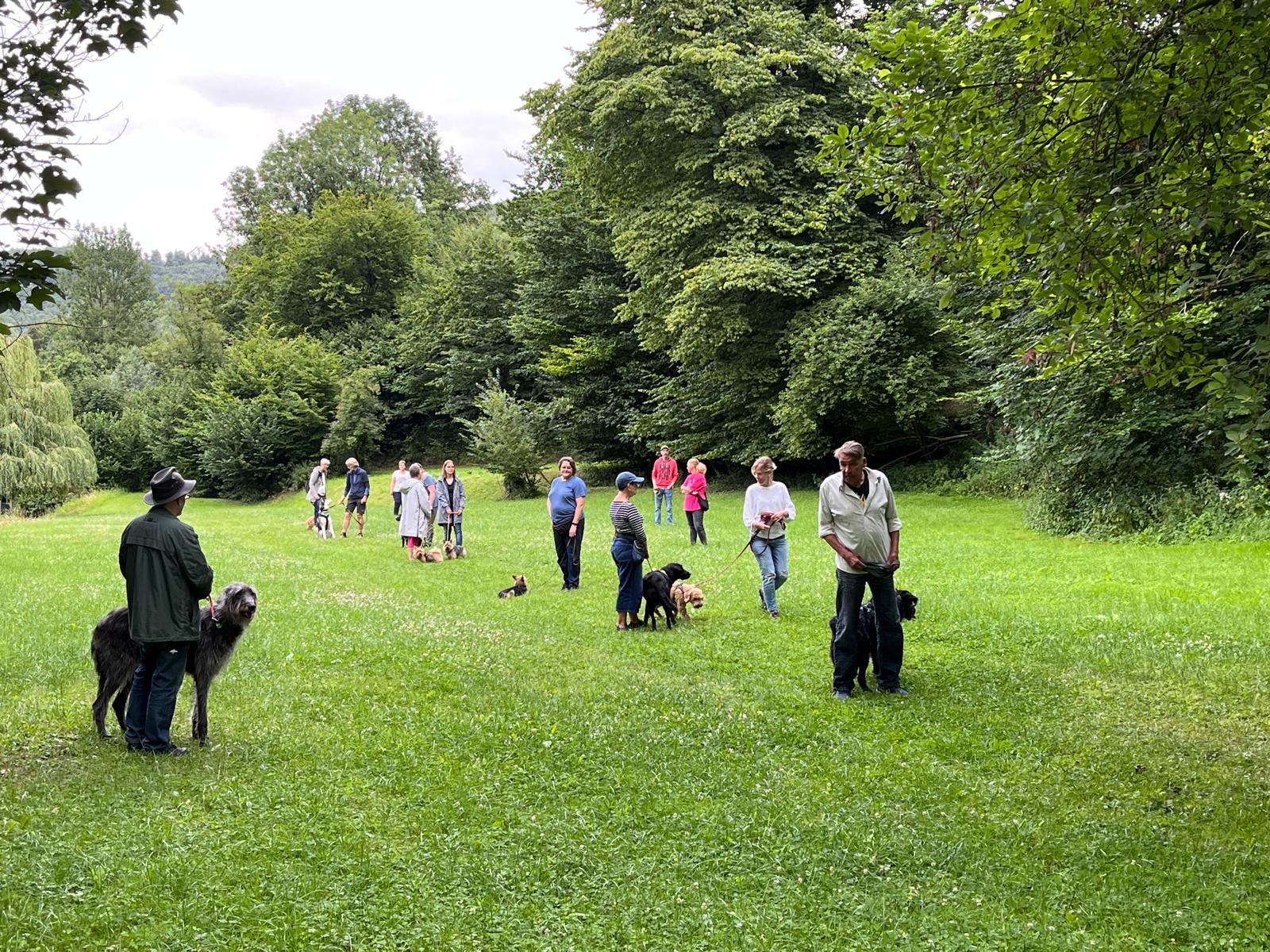 Jede Lernrunde besteht aus einem kurzen Lösen der Hunde, einer Trainingseinheit für die Hunde und eines Minivortrages zur theoretischen Unterstützung der Halters.